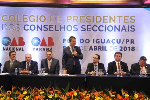 "Quis o destino que o Paraná, onde os holofotes acendem o palco central da cena jurídica nacional, neste momento receba o Colégio", disse. "A paixão pela advocacia torna essa profissão única e nos mostra cada dia a importância de lutarmos pelo direito e pela Justiça."