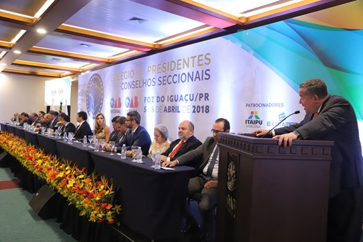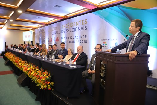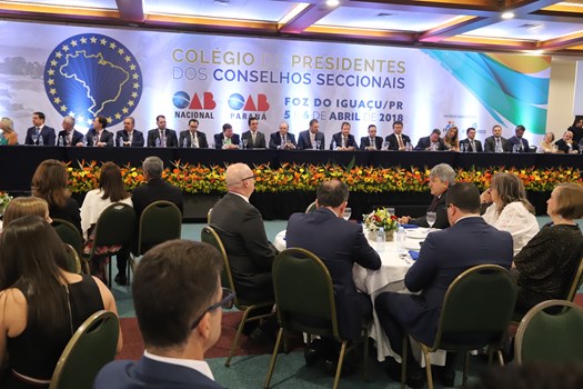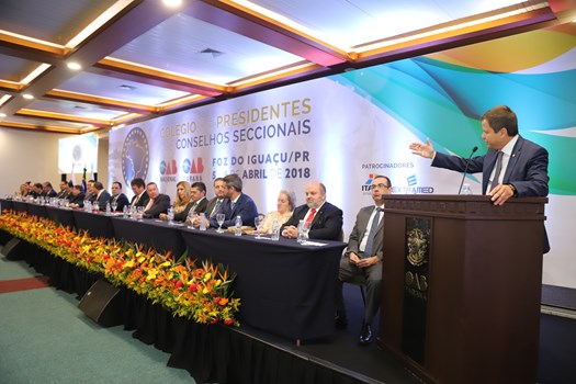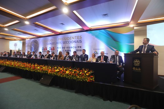 O coordenador do Colégio de Presidentes de Seccionais, Homero Mafra, presidente da OAB do Espírito Santo, fez um duro discurso sobre o atual momento do país e conclamou o protagonismo da Ordem frente às dificuldades. "Hoje, mais uma vez, nos reunimos no Paraná, em um tempo de um país dividido, conflagrado, com vários setores da população flertando com o autoritarismo que solapa a defesa das liberdades e não crê nos valores democráticos", disse.