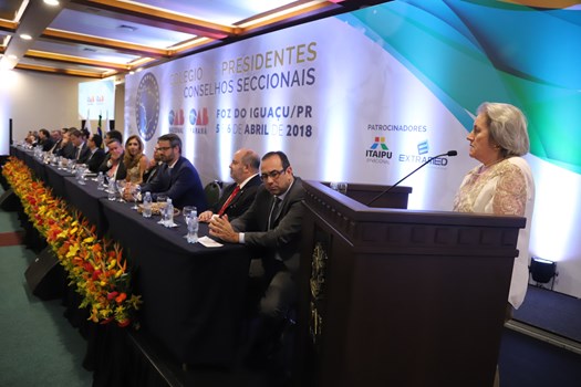 A mesa da cerimônia de abertura contou com as seguintes presenças: Claudio Lamachia, presidente nacional da OAB; José Augusto de Noronha, presidente da OAB-PR; Felipe Sarmento, secretário-geral da OAB; Ibaneis Rocha, secretário-geral adjunto; Antonio Oneildo Ferreira, diretor tesoureiro; Valter Cândido Domingos, presidente da OAB de Foz do Iguaçu; Homero Mafra, coordenador do Colégio de Presidentes de Seccionais e presidente da OAB-ES; Fernanda Marinela, sub-coordenadora do Colégio de Presidentes e presidente da OAB-AL.