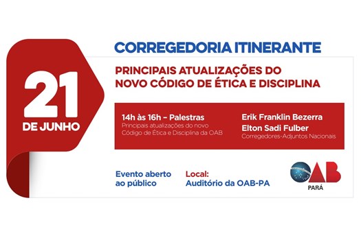 Brasília - A seccional paraense da OAB receberá na próxima quinta-feira, dia 21 de junho de 2018, o projeto “Corregedoria Itinerante”, uma ação da Corregedoria-Geral do Conselho Federal da Ordem que visa esclarecer a advocacia sobre as atualizações do novo Código de Ética e Disciplina (CED).