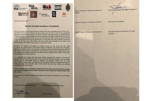 Na ocasião, Lamachia defendeu a proposta que resultou numa dura moção de reprovação por parte das mais importantes entidades internacionais de Direito à política de “tolerância zero” nas regras migratórias imposta pelo governo de Donald Trump.