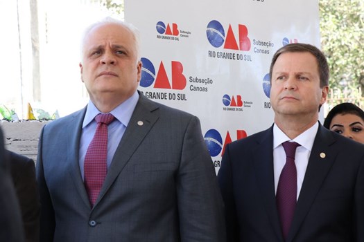Porto Alegre – O presidente nacional da OAB, Claudio Lamachia, juntamente com o presidente e da seccional gaúcha da entidade, Ricardo Breier, comandaram nesta segunda-feira (27) o ato de lançamento da pedra fundamental da Subseção de Canoas.