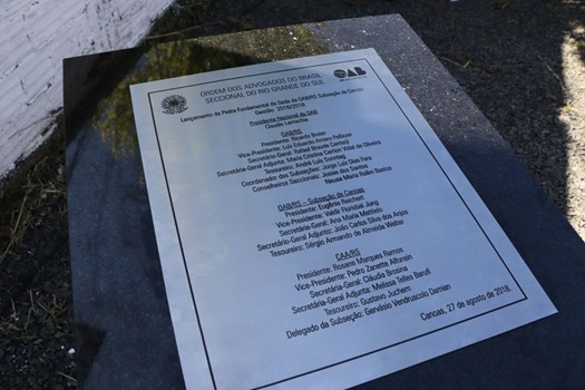 Após os discursos, ocorreu o descerramento da placa, registrando o ato de lançamento da pedra fundamental da futura sede da Subseção de Canoas. Ao final, mais de 50 advogados e convidados registraram o histórico momento em uma foto junto da placa, indicando o local da futura sede, na rua Brasil, 181. O próximo passo é definir o planejamento para início das obras.