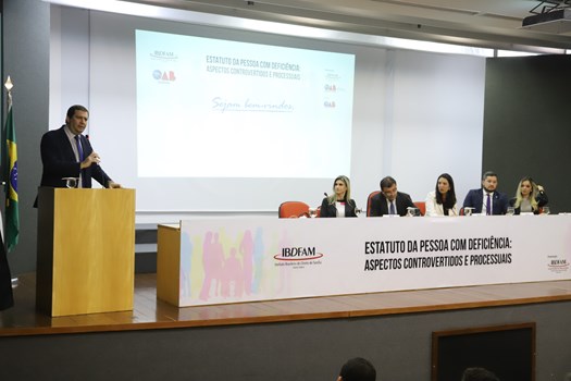 Compuseram a mesa de honra o vice-presidente da Comissão dos Direitos da Pessoa com Deficiência do Conselho Federal da OAB, Joelson Costa Dias; a presidente do Instituto Brasileiro do Direito de Família no Distrito Federal (IBDFAM-DF), Renata Nepomuceno e Cysne; o diretor sociocultural do IBDFAM-DF, Leonardo Vieira Carvalho; a presidente da Comissão de Estudos Constitucionais da Família do IBDFAM-DF, Ana Carolina Pires de Souza Sena; e a vice-presidente da Comissão, Mikaela Minaré Braúna.