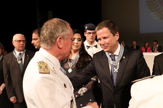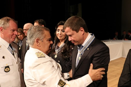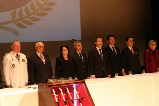 Durante a solenidade, foram entregues medalhas a autoridades e representantes civis por reconhecimento e mérito a ações e serviços prestados ao TJMRS.