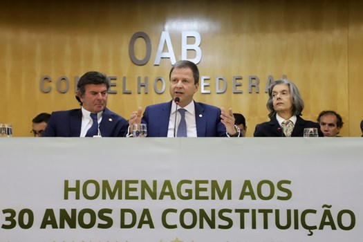 Lamachia apregoou que os 30 anos da Constituição traduzem a maturidade do Estado Democrático de Direito. “Vivemos um momento de profundas dificuldades, mas a partir de um texto constitucional completo como este, estamos plenamente prontos para lidar com os desafios. Todo e qualquer extremismo, seja ele de direita ou de esquerda, não nos levará a lugar nenhum. O que precisamos é de serenidade, equilíbrio e ponderação, atributos que a OAB traz ao longo de sua história. Aliás, a trajetória da OAB se confunde com a da própria democracia brasileira, à luz da Constituição”, disse.