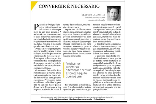 Brasília - Confira o artigo do presidente nacional da OAB, Claudio Lamachia, publicado na edição do dia 26/11, pelo jornal Zero Hora, de Porto Alegre.