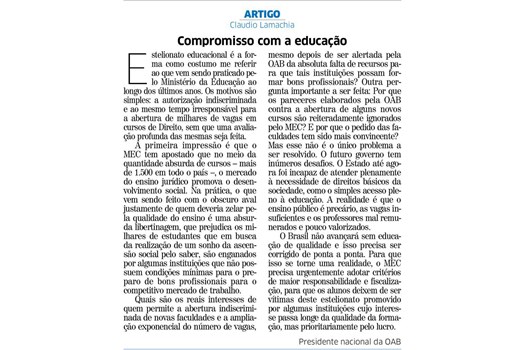 O Brasil não avançará sem educação de qualidade e isso precisa ser corrigido de ponta a ponta. Para que isso se torne uma realidade, o MEC precisa urgentemente adotar critérios de maior responsabilidade e fiscalização, para que os alunos deixem de ser vítimas deste estelionato promovido por algumas instituições cujo interesse passa longe da qualidade da formação, mas prioritariamente pelo lucro.