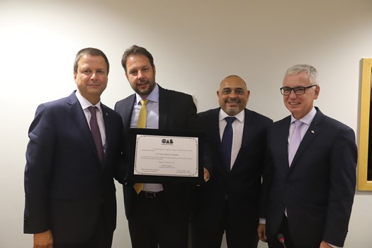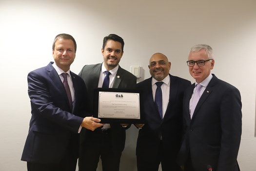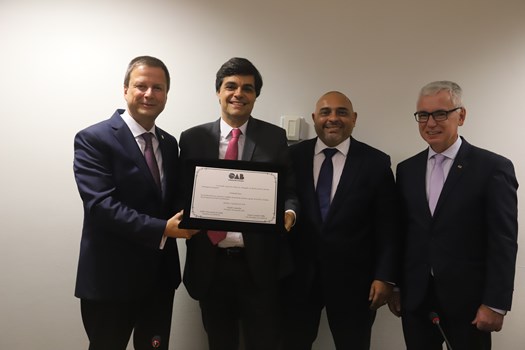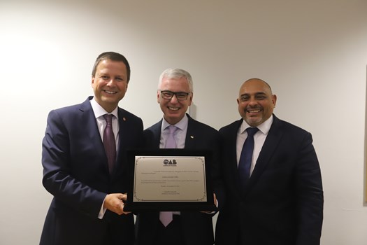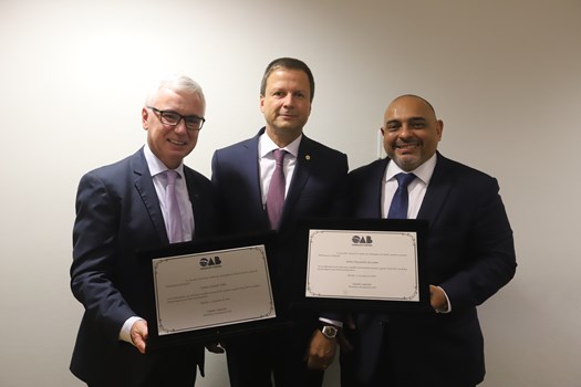 Lamachia homenageia e é homenageado pela Comissão Nacional de Prerrogativas