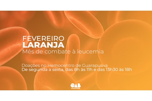 A seccional da OAB no Paraná, a subseção de Guarapuava e a Caixa de Assistência dos Advogados (CAA-PR) estão realizando a campanha 'Fevereiro Laranja' para cadastrar doadores de medula óssea, em ação de combate à leucemia. Até o fim do mês de fevereiro, advogados e advogadas de Guarapuava e de toda a região central do Estado do Paraná podem ir até o Hemocentro Regional para realizar o cadastro no Registro Nacional dos Doadores de Medula Óssea (Redome).