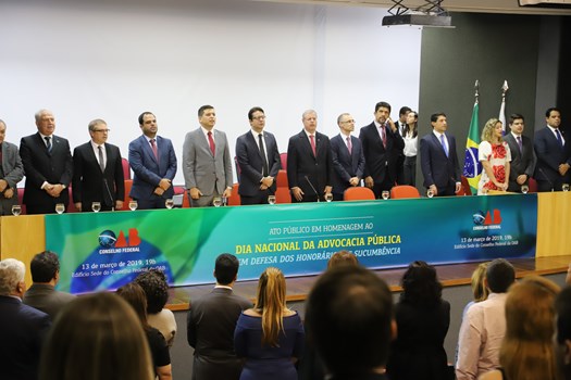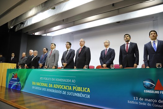 O Conselho Federal da OAB e diversas associações da advocacia pública realizaram nesta quarta-feira (13) um ato em homenagem ao Dia Nacional da Advocacia Pública – em defesa dos honorários de sucumbência. Durante a ação ocorreu um desagravo aos Advogados Públicos Federais em razão do episódio de desrespeito em julgamento no Tribunal Regional Federal da 2ª Região (TRF2) que tratava da constitucionalidade dos dispositivos que conferem os honorários de sucumbência.