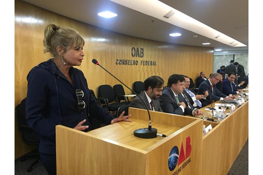 Cléa Carpi, conselheira federal pelo Rio Grande do Sul e decana do Conselho Pleno, leu o compromisso de posse dos 129 presidentes para a investidura oficial dos empossados.