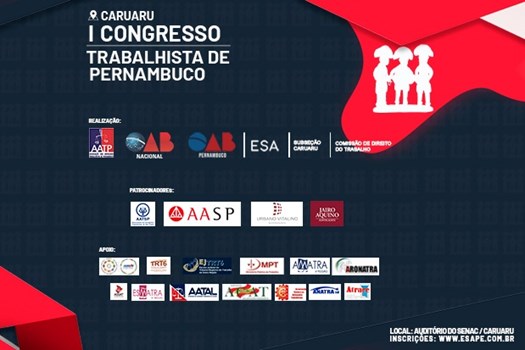 Estão abertas as inscrições para o I Congresso Trabalhista de Pernambuco – Desafios da Advocacia Trabalhista no Cenário Pós-reforma, que vai ocorrer entre os dias 29 e 30 de agosto, no auditório do Senac, em Caruaru, no agreste de Pernambuco. O evento é organizado pela Escola Superior de Advocacia de Pernambuco (ESA-PE) e pela Associação dos Advogados Trabalhistas de Pernambuco (AATP), com participação da subseção da OAB em Caruaru e da Comissão de Direito do Trabalho da OAB-PE.