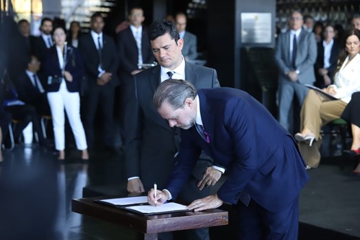 Assinaram o pacto o ministro da Justiça e Segurança Pública, Sergio Moro; o presidente do Supremo Tribunal Federal (STF), Dias Toffoli; a ministra da Mulher, Família e Direitos Humanos, Damares Alves; o ministro da Cidadania, Osmar Terra; a procuradora-geral da República, Raquel Dodge; o corregedor nacional de Justiça, Humberto Martins; a senadora Leila Barros (PSB-DF); as deputadas federais Soraya Santos (MDB-RJ), Iracema Portella (PP-PI), Dorinha Rezende (DEM-TO); o secretário de Assuntos de Soberania Nacional e Cidadania, embaixador Fabio Mendes Marzano; o defensor público-geral federal, Gabriel Faria Oliveira; e o presidente do Conselho Nacional de Chefes de Polícia Civil, Robson Cândido da Silva.