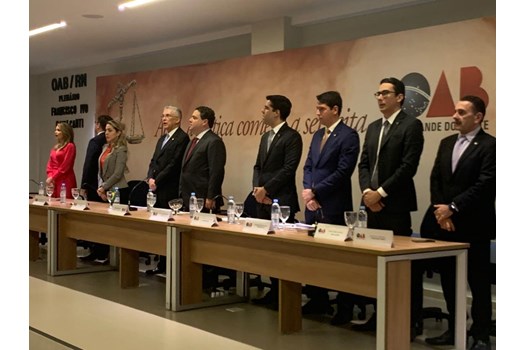 O conselheiro federal pelo Amapá, Felipe Sarmento, participou da cerimônia e conclamou os novos profissionais a se engajarem no sistema OAB. “Fico feliz de estar aqui porque vi durante a presidência do meu amigo Sergio Freire a edificação dessa sede, que era um sonho e uma necessidade da OAB-RN. Queria dizer aos novos advogados e advogadas, que são muito bem-vindos aqui ingressando nos quadros da Ordem, que estejam próximos da OAB. A Ordem precisa dos senhores e das senhoras nas comissões, nos eventos, nas promoções das caixas de assistência e da ESA. Não parem de estudar, não parem de crescer como advogados. A advocacia é um aprendizado constante e o advogado tem de estar atualizado e capacitado. A Ordem estará sempre presente protegendo seu livre exercício profissional e preservando a dignidade dos seus honorários”, afirmou ele.