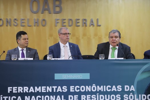 A OAB Nacional promoveu o Seminário sobre as Ferramentas Econômicas da Política Nacional de Resíduos Sólidos (PNRS), nesta quinta-feira (17), na sede do Conselho Federal. O presidente da Comissão Especial de Saneamento Básico e Recursos Hídricos, Leandro Frota, ressaltou que o evento faz parte de uma série de discussões que a instituição tem realizado para tratar do Marco Regulatório do Saneamento Básico.