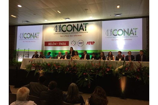 A OAB Nacional participa do 41º Congresso Nacional da Advocacia Trabalhista (XLI CONAT), que ocorre entre os dias 6 e 8 de novembro, na cidade de Belém-PA, e reúne mais de 1500 profissionais do Direito do Trabalho de todo o Brasil. Durante o evento são abordados temas relativos ao mundo do trabalho e de interesse de vários segmentos da sociedade brasileira. O CONAT é realizado pela Associação Brasileira de Advogados Trabalhistas (ABRAT) desde 1978, sendo considerado o maior congresso trabalhista da América Latina.