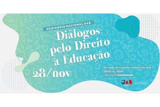 A Comissão Especial de Direito à Educação da OAB Nacional promove o seminário “Diálogos pelo Direito à Educação”, que será realizado no dia 28 de novembro, a partir das 9h, na sede do Conselho Federal da OAB, em Brasília.
