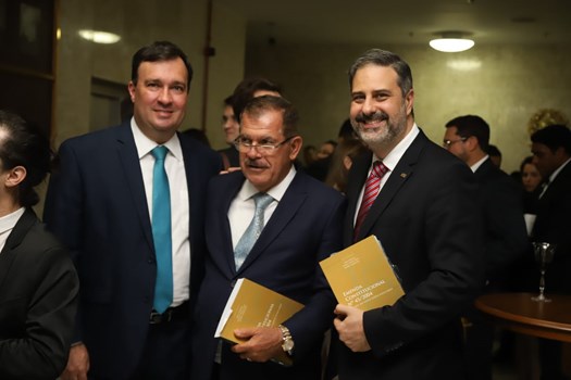 O presidente nacional da OAB, Felipe Santa Cruz, o presidente do Supremo Tribunal Federal (STF), ministro Dias Toffoli, e o conselheiro do Conselho Nacional de Justiça, André Godinho, lançaram, nesta terça-feira (10), o livro “Emenda Constitucional n° 45 - 15 anos do novo Poder Judiciário”, em cerimônia realizada no salão branco do Supremo.