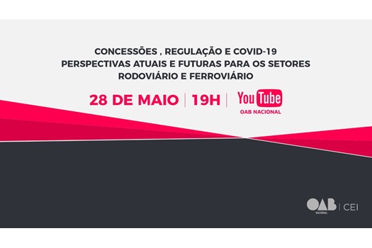 A OAB Nacional, por iniciativa da sua Comissão Especial de Infraestrutura, promoverá, na próxima quinta-feira (28), um debate acerca do tema Concessões, regulação e Covid-19: Perspectivas atuais e futuras para os setores rodoviário e ferroviário. O evento terá início às 19h e será transmitido pelo canal OAB Nacional no YouTube.
