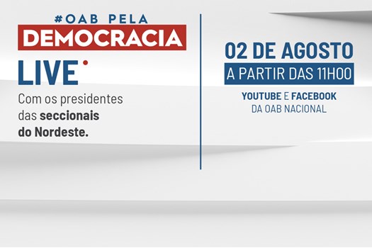 Neste domingo, a live é com os dirigentes da Ordem da região Nordeste. Além do presidente da OAB Nacional, Felipe Santa Cruz, e do presidente da Comissão Nacional de Defesa da República e da Democracia, Nabor Bulhões, participam da live o presidente da OAB-AL, Nivaldo Barbosa da Silva Junior; o presidente da OAB-BA, Fabrício de Castro Oliveira; o presidente da OAB-CE, José Erinaldo Dantas Filho; o presidente da OAB-MA, Thiago Roberto Morais Diaz; o presidente da OAB-PB, Paulo Antônio Maia e Silva; o presidente da OAB-PE, Bruno de Albuquerque Baptista; o presidente da OAB-PI, Celso Barros Coelho Neto; o presidente da OAB-RN, Aldo de Medeiros Lima Filho; e o presidente da OAB-SE, Inácio José Krauss de Menezes.