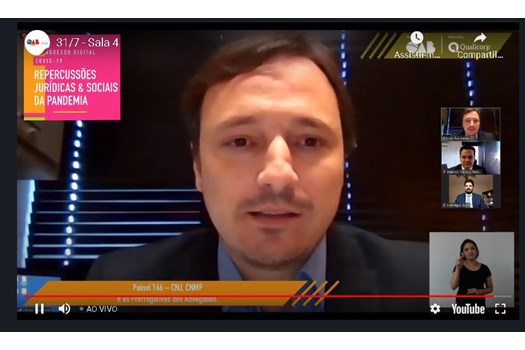 O conselheiro federal Rafael Canterji mediou o painel "Mudanças do processo penal do pacote anticrime em meio à pandemia". Participaram do debate o conselheiro federal Gustavo Badaró, que falou sobre o juiz de garantias; a professora da Universidade de São Paulo, Marta Saad, que analisou o acordo de não persecução penal; e o ministro do Superior Tribunal de Justiça, Sebastião Reis, que tratou da prisão cautelar.