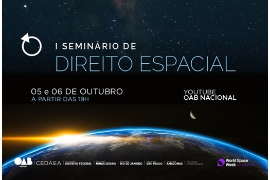 A OAB Nacional, por meio de sua Comissão Especial de Direito Aeronáutico, promove o “I Seminário de Direito Espacial”, que será realizado nos dias 5 e 6 de outubro, das 19h às 21h, com transmissão em tempo real das palestras por meio do canal oficial da OAB Nacional no YouTube. Os debates contaram com a participação de especialistas, autoridades governamentais e acadêmicos.
