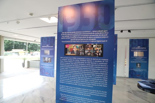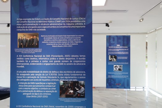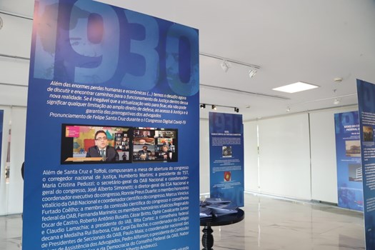 A OAB Nacional inaugurou nesta quarta-feira (18) a exposição que celebra seus 90 anos de existência. A exposição ocupa o saguão de entrada do prédio do Conselho Federal, em Brasília. Por meio de painéis dispostos ao longo do salão, o visitante faz uma viagem no tempo percorrendo os 90 anos da instituição por meio de fatos institucionais e históricos que tiveram a participação da Ordem. Também são revelados bastidores e curiosidades que construíram a história da OAB de 1930 a 2020. Esses detalhes são revelados ao visitante a cada passo desse trajeto entre os painéis, transformando o espaço numa vitrine histórica da advocacia brasileira.