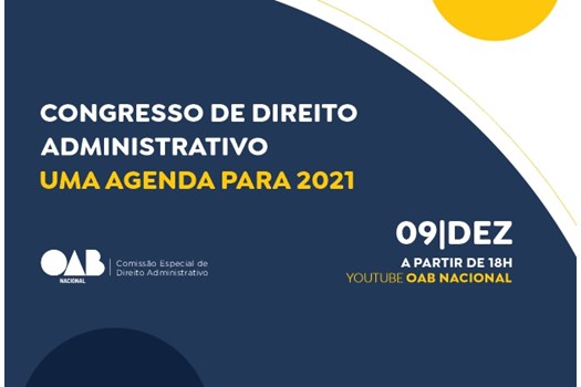 A OAB Nacional, por meio da sua Comissão Especial de Direito Administrativo, promoverá, na próxima quarta-feira (9), o evento virtual “Congresso de Direito Administrativo: uma Agenda para 2021”. O evento será gratuito e não há a necessidade de inscrição prévia, bastando que os interessados acessem o canal da OAB Nacional no YouTube a partir das 18h do dia do evento.