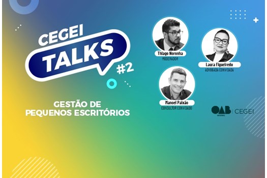 A OAB Nacional, por meio da Comissão Especial de Gestão, Empreendedorismo e Inovação (CEGEI), realizará um evento virtual, no dia 18 de março, para debater pontos centrais da gestão em pequenos escritórios de advocacia. O “CEGEI Talks” será o segundo de uma série de 10 eventos que serão realizados ao longo de todo o ano de 2021. O primeiro – realizado em fevereiro – abordou planejamento estratégico para advogados.