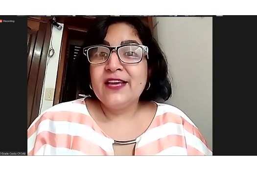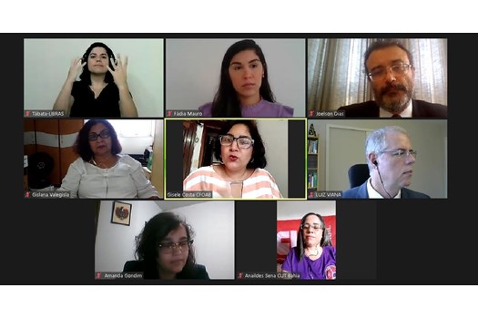 A última exposição do painel foi realizada pela Coordenadora Executiva Nacional do Movimento Brasileiro de Mulheres Cegas e com Baixa Visão, Gislana Monte Vale. Ela falou sobre os desafios, possibilidades e perspectivas da participação de mulheres com deficiência no movimento de Pessoas com Deficiência - na liderança de entidade - e violência política nesse espaço. "Uma fala que constrói caminhos para uma mulher com deficiência é 'protagonismo'. Somos protagonistas da nossa própria vida. Precisamos falar por nossa própria voz e a respeito de nossas próprias questões. É importante que a gente se reconheça em nossa própria voz e em nossa própria força e para isso precisamos construir redes de fortalecimento contra a violência, de empoderamento e contra a violência", sugeriu ela.
