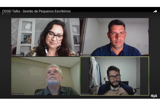 A OAB Nacional, por meio de sua Comissão Especial de Gestão, Empreendedorismo e Inovação, realizou na noite desta quinta-feira (18) mais uma rodada do CEGEI Talks, com o tema Gestão de Pequenos Escritórios. Esta foi a segunda edição da série, que promoverá um total de 10 rodadas de conversas, uma por mês. O debate foi transmitido ao vivo pelo canal oficial da OAB no YouTube. Cada edição disponibiliza um infográfico com os principais pontos debatidos, que serão reunidos em um e-book.