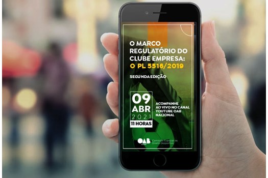 A OAB Nacional, por intermédio da Comissão Especial de Direito Desportivo, promoverá o debate virtual sobre "O Marco Regulatório do Clube Empresa: O PL 5516/2019". O evento será no dia 9 de abril, a partir das 11h, com transmissão pelo canal da OAB Nacional do YouTube.
