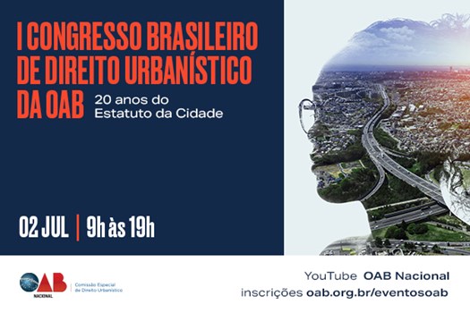 A OAB Nacional, por meio de sua Comissão Especial de Direito Urbanístico, abriu as inscrições para o I Congresso Brasileiro de Direito Urbanístico, evento virtual que será realizado no dia 2 de julho, das 9h às 19h, com transmissão por links específicos que serão divulgados posteriormente.