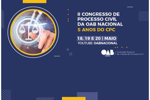 de Processo Civil, promoverá o II Congresso de Processo Civil da OAB Nacional - 5 anos do Código de Processo Civil (CPC), entre os dias 18 e 20 de maio. Para participar