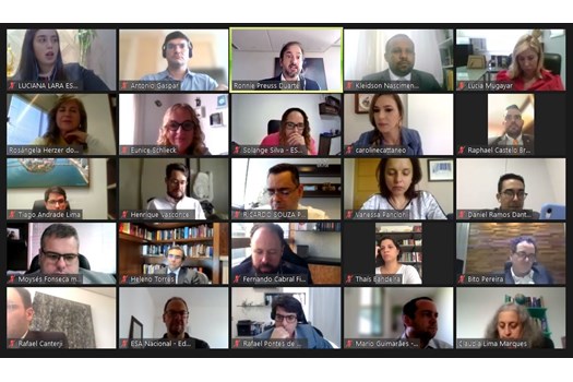 Além desse tema, os dirigentes também debateram sobre a plataforma de ensino da ESA Nacional e a importância da adesão das ESAs ao ambiente virtual para o fortalecimento do sistema, com oferecimento de uma gama maior de cursos, padronização de filmagens e treinamento de equipe e de professores. Foram apresentados ainda dados e informações sobre o EAD no país, área que registrava grande crescimento nos últimos anos e que ocupa uma posição de destaque ainda maior no cenário atual.