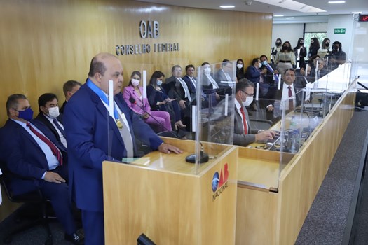 Na sequência, o presidente da OAB homenageou o governador Ibaneis Rocha. “Em meio a um dos mais conturbados períodos de nossa história republicana, a democracia brasileira enfrenta um enorme desafio. O cenário caótico na saúde pública tem sido aprofundado pela instabilidade política e a grave crise econômica que atravessamos. Sem fugir à luta, a OAB sempre honrou e honrará com o compromisso de proteger todos aqueles cujos direitos são aviltados. Ibaneis bem sabe que é o nosso desejo por justiça que nos une e dá sentido à nossa existência enquanto advogados. O reconhecimento da advocacia brasileira, conferindo-lhe esta homenagem, é um ato coerente e devidamente fundamentado em sua brilhante e incansável carreira”, discursou.