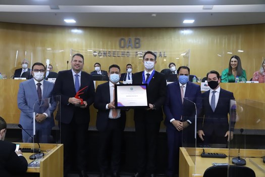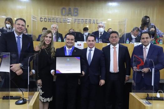 O Conselho Pleno da OAB, reunido em caráter extraordinário nesta terça-feira (14), homenageou o presidente do Senado, Rodrigo Pacheco (PSD-MG), e os deputados federais Margarete Coêlho (PP-PI) e Fábio Trad (PSD-MS), todos ex-conselheiros da OAB. A eles foi outorgada a honraria Raymundo Faoro pelo trabalho na preservação do Estado Democrático de Direito humanizado.