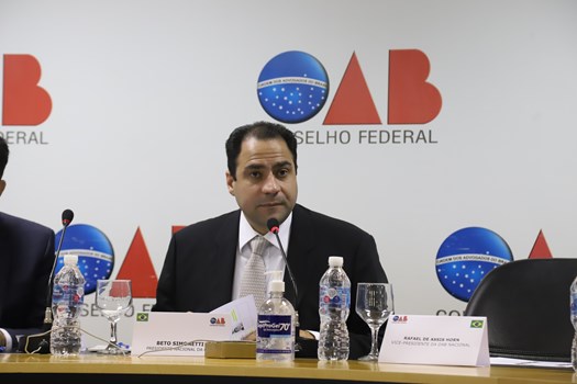 Nesta 3ª feira (8/3), o presidente nacional da OAB, Beto Simonetti, realizou uma reunião técnico-administrativa sobre propostas de benefícios nas áreas de saúde e assistência pessoal à advocacia. Participaram diretores nacionais da OAB, presidentes seccionais e de caixas de assistência. O encontro foi coordenado pelo presidente do Fundo de Integração e Desenvolvimento Assistencial dos Advogados (Fida), o conselheiro federal Felipe Sarmento.