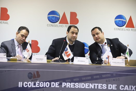 O presidente do Conselho Federal, Beto Simonetti, abriu o evento do Colégio de Presidentes de CAA, recepcionando todos os presentes. O decano do CFOAB e presidente do Fundo de Integração e Desenvolvimento Assistencial dos Advogados (Fida), Felipe Sarmento, também esteve presente. “O Fida vai estar sempre à disposição e eu me coloco também à disposição para qualquer esclarecimento que vocês queiram tratar também.”