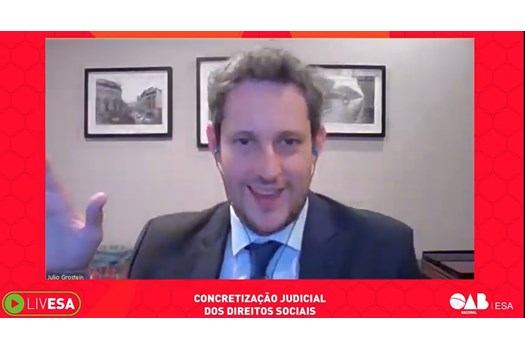 A ESA Nacional promoveu na noite desta quinta-feira (14/7) a palestra “Concretização Judicial dos Direitos Sociais”, com a presença do jurista Julio Grostein. A apresentação foi parte da divulgação do curso livre Prática em Direitos Sociais. As aulas discutirão o panorama em que o papel do Estado na garantia de direitos sociais é cada vez mais relevante, ao mesmo tempo em que o Poder Judiciário assume o protagonismo no cumprimento das obrigações da efetivação desses direitos.