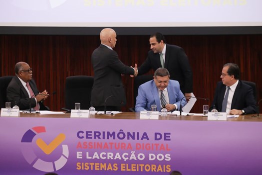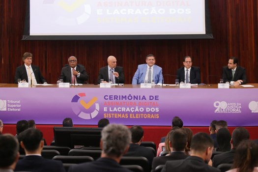 Na sequência, eles foram lacrados digitalmente e fisicamente e armazenados na sala-cofre do Tribunal, dando por encerrado o evento. A mesa foi composta pelo presidente do TSE, ministro Alexandre de Moraes, o ministro do Supremo Tribunal Federal (STF) e ministro substituto do TSE, Nunes Marques, os ministros do TSE Benedito Gonçalves e Sérgio Banhos, o vice-procurador-geral eleitoral, Paulo Gonet, e o presidente da OAB Nacional, Beto Simonetti