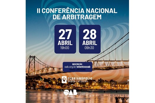 A 2ª Conferência Nacional de Arbitragem será realizada nesta quinta (27/4) e sexta-feira (28/4), em Florianópolis. O evento reunirá grandes especialistas no assunto para debates referentes ao desenvolvimento do tema no Brasil. O evento é organizado pelo Conselho Federal da OAB e ocorrerá, de forma presencial, na sede da OAB Santa Catarina.