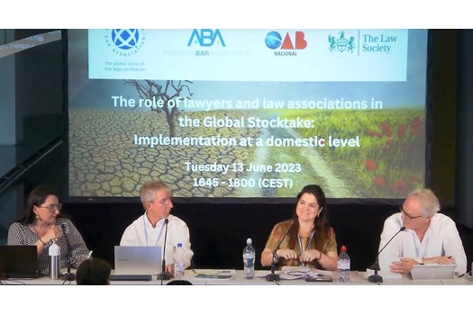 Durante o encontro, Letícia Perrone Campos Mello foi uma das palestrantes do evento paralelo “O papel dos advogados e das ordens de advogados no Balanço Global do Acordo de Paris: Implementação a nível nacional”, organizado pela International Bar Association (IBA) e coorganizado pela Ordem dos Advogados do Brasil e pela American Bar Association (ABA).