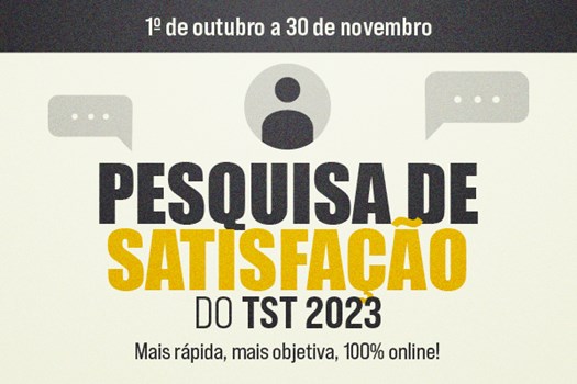 O Tribunal Superior do Trabalho (TST) iniciou a coleta da Pesquisa de Satisfação 2023. O questionário é aberto ao público em geral, membros da advocacia e do Ministério Público, partes em processos judiciais e estudantes de Direito. A ação teve início na última segunda-feira (2/10) e receberá respostas dos participantes até 30 de novembro deste ano.