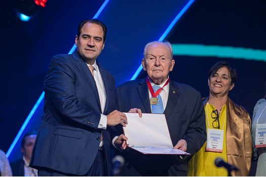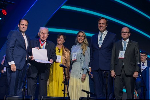 Durante a abertura da 24ª Conferência Nacional da Advocacia Brasileira, ocorrida no Expominas, em Belo Horizonte (MG), nesta segunda-feira (27/11), a OAB outorgou a Medalha Rui Barbosa ao membro honorário vitalício da instituição Bernardo Cabral. A homenagem foi entregue pelo presidente da Ordem, Beto Simonetti, e pela secretária-geral do Conselho Federal, Sayury Otoni.