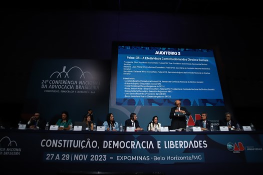 Os participantes da 24ª Conferência Nacional da Advocacia Brasileira assistiram, na manhã desta quarta-feira (28/11), a um debate dedicado à análise da efetividade constitucional dos direitos sociais. Na pauta do encontro, os especialistas abordaram aspectos como o esvaziamento da competência da Justiça do Trabalho por decisões do Supremo Tribunal Federal (STF); a renda universal básica; a regulação do trabalho pelo uso das plataformas digitais; o vínculo de emprego e os escritórios de advocacia; e o trabalho escravo e degradante.