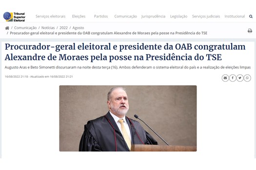 (19/7/2022) OAB reitera confiança no sistema e na Justiça eleitoral