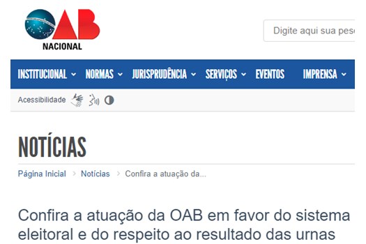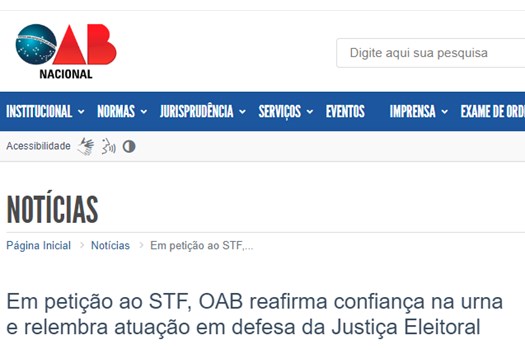 Abaixo, veja algumas das notas públicas divulgadas pela OAB em defesa do sistema eleitoral brasileiro: