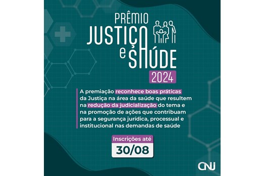 O Conselho Nacional de Justiça (CNJ), por meio do Fórum Nacional do Judiciário para a Saúde (Fonajus), abriu as inscrições para a 2ª edição do Prêmio Justiça e Saúde 2024. A premiação tem como objetivo reconhecer e valorizar práticas inovadoras e eficientes que promovam a integração entre o sistema judiciário e a área da saúde no Brasil.